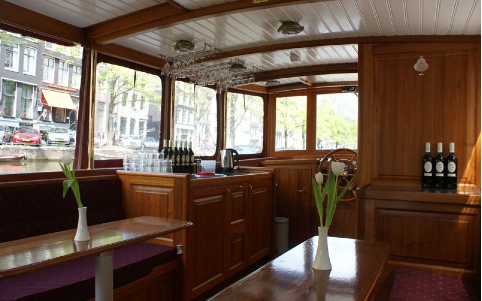 Alle salonboten zijn prachtig gerestaureerd, met behoud van authentieke details. De boot is van alle gemakken voorzien: een toilet, verwarming, complete bar en microfoon zijn aanwezig. De elektrische aandrijving is geluidloos, geurloos en milieuvriendelijk. De boot is exclusief gereserveerd voor jullie gezelschap; er zullen geen anderen aan boord zijn. Met mooi weer kunnen de zijkanten open. In de winter zorgt de verwarming ervoor dat het comfortal is: je hoeft niet met je jas aan te eten. De bediening zorgt dat het jullie aan niets ontbreekt.